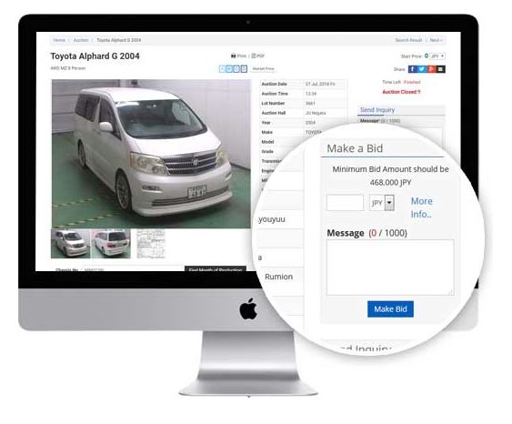 Choose your required vehicle from our auction stock list and place the Bid using the Make Bid form. We will receive your bid request and will make the bid in the Auction on your behalf.